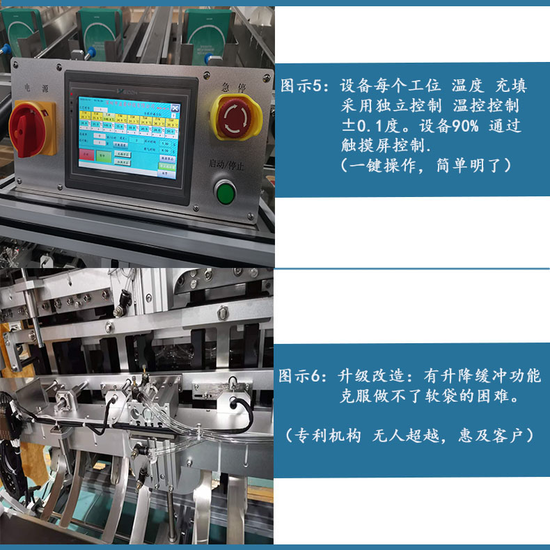4、PLC+液晶觸摸屏控制操作,可在觸摸屏上輕松設置參數(shù),產(chǎn)量和出錯信息清晰直觀,數(shù)字顯示溫控