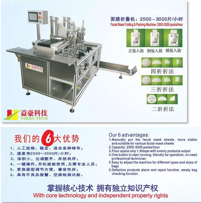 益豪科技的面膜折疊機(jī)通過了歐盟CE認(rèn)證,已取得國(guó)家實(shí)用新型專利。公司產(chǎn)品主要銷往廣州、上海、韓國(guó)、日本等地,品牌已經(jīng)家喻戶曉,且市場(chǎng)占有率達(dá)80%以上,其中,標(biāo)準(zhǔn)的三四折面膜折疊機(jī)為最暢銷的產(chǎn)品,因?yàn)檫@類機(jī)器生產(chǎn)的面膜消費(fèi)者很喜愛,消費(fèi)率高。而面膜折疊機(jī)最高連續(xù)穩(wěn)定折棉速度可達(dá)3200片/小時(shí)以上,為生產(chǎn)廠家解決了折疊面膜布的煩惱,節(jié)省了大量人力資源。